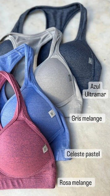 Tops con taza y espalda deportiva. Disponibles en amplia gama de color.