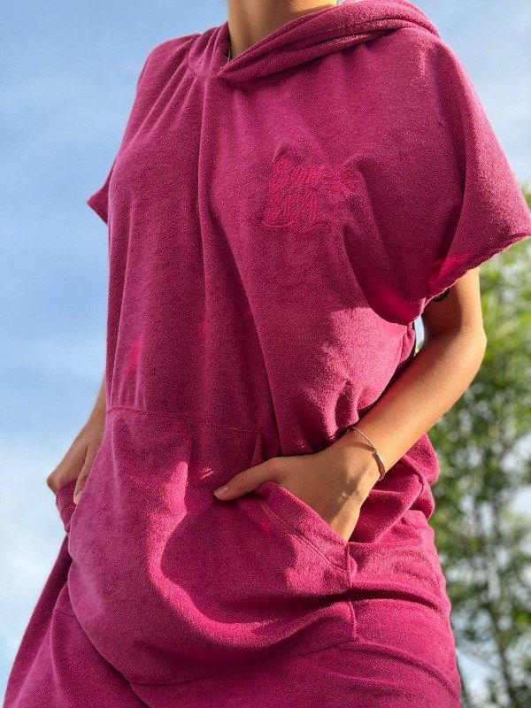 Ponchos playero toalla. Disponible en color Azul, Rosa, Violeta y Fucsia.